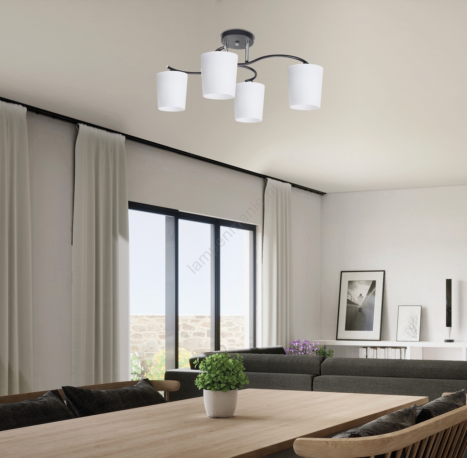 Hanglamp met vaste pendel ESNYR 4xE27/40W/230V zwart/wit kenmerkt een mooi en functioneel ontwerp.  Voor het licht is een lamp met E27 fitting geschikt. Hier kunt u andere lampen tegen voordelige prijzen kopen. U heeft een interessante aanwinst voor uw woning.