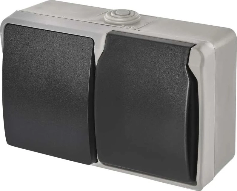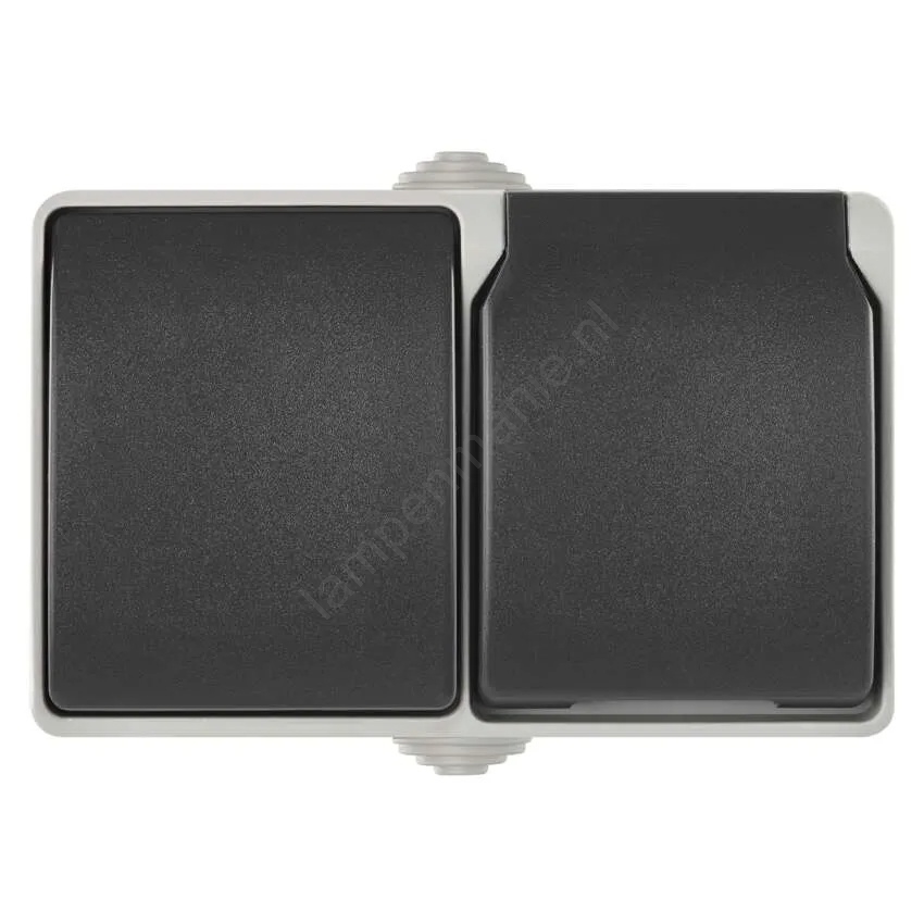 Wisselschakelaar huiselijk nr. 6 met stopcontact 250V/16A IP44 grijs