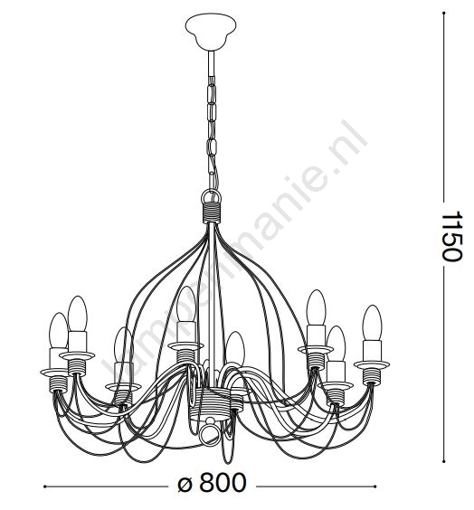 Ideal Lux - Hanglamp aan een ketting CORTE 8xE14/40W/230V diameter 80 cm koper kenmerkt een mooi en functioneel ontwerp.  Voor het licht is een lamp met E14 fitting geschikt. Hier kunt u andere lampen tegen voordelige prijzen kopen. U heeft een interessante aanwinst voor uw woning.