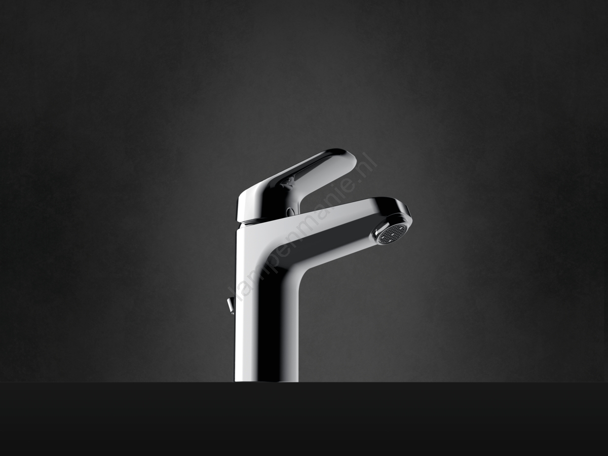 • De kraan is uitgerust met een metalen bedieningshendel en heeft een vaste uitloop.