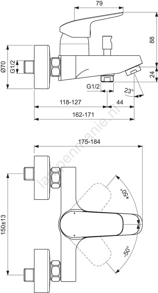 • De kraan biedt een verstelbare uitlooplengte van 162 tot 171 mm.