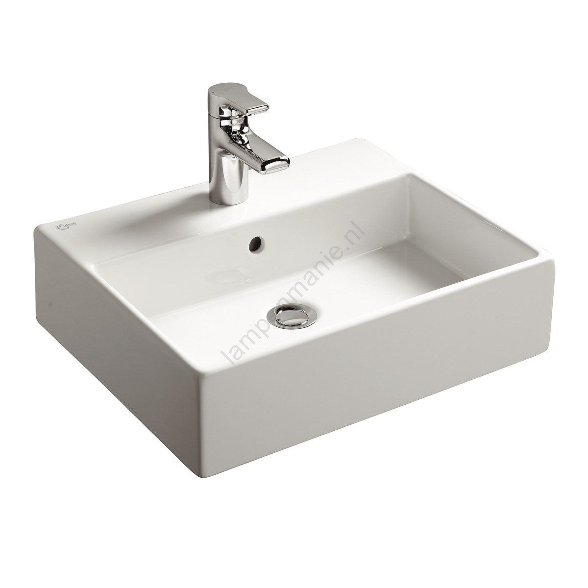 • De wastafel heeft één voorgeboord gat voor de montage van een wastafelkraan.