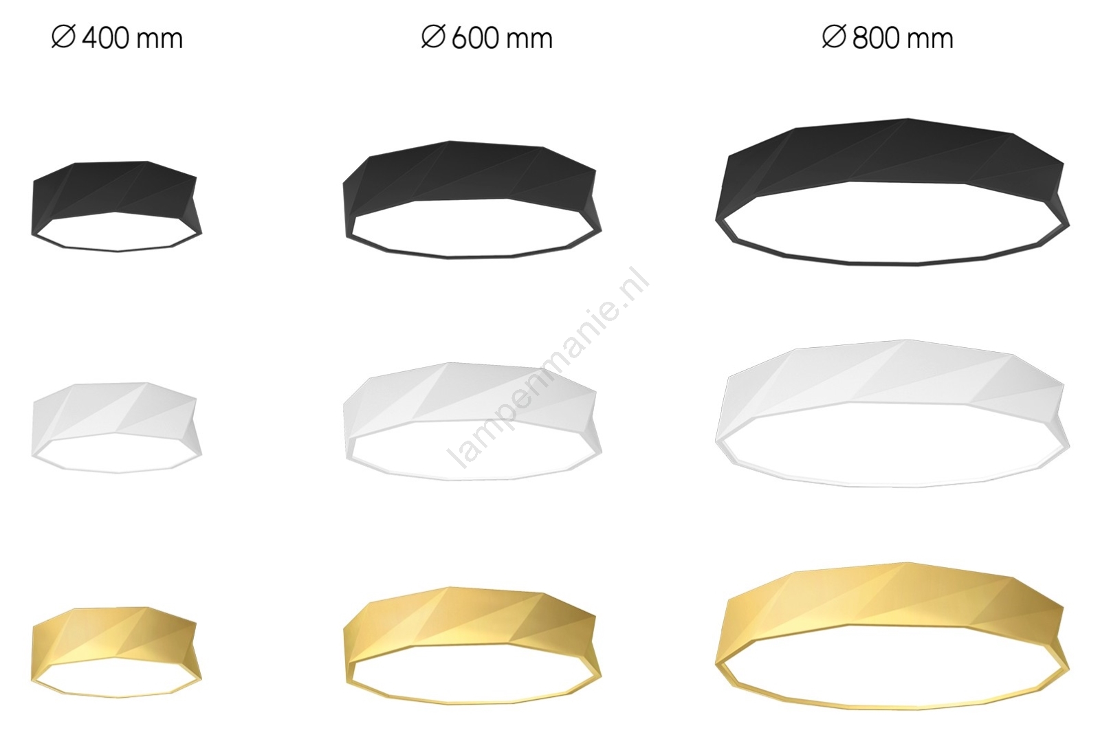 • De volledige DIAMANTE-serie bestaat uit drie formaten plafondlampen van 40 cm, 60 cm en 80 cm, en in drie tinten, zodat de collectie ook aan de eisen van de meest veeleisende gebruikers voldoet.