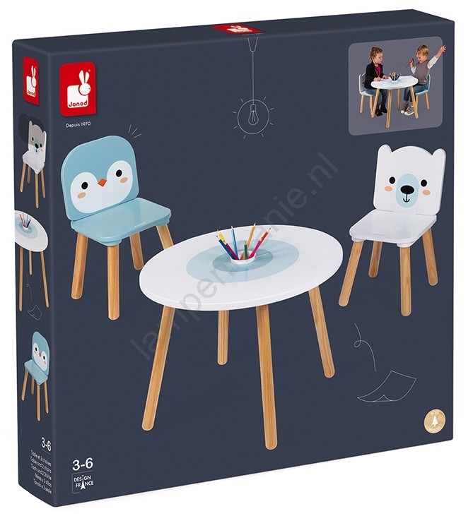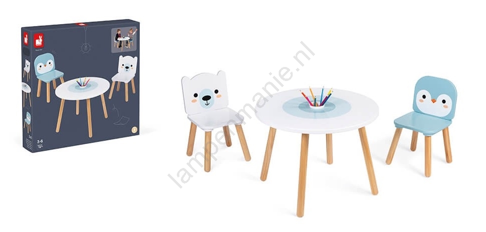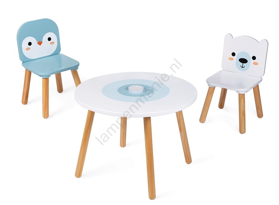 • Deze kleurrijke set met een tafel en 2 stoelen met een pooldierenmotief is de perfecte aanvulling voor de kinderkamer.