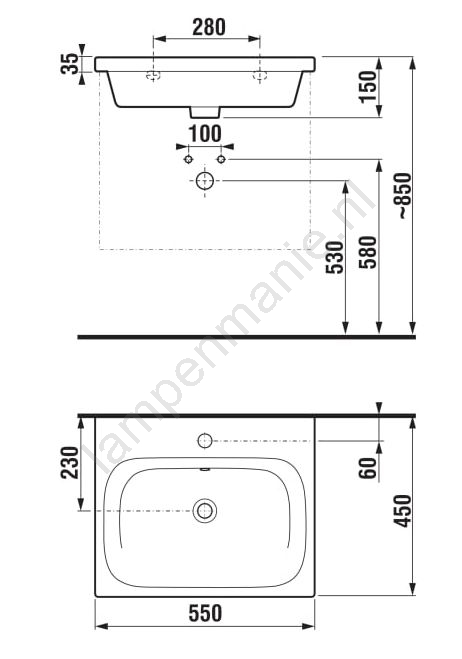 • Verpakking bevat wastafel zonder sifon en kraan.