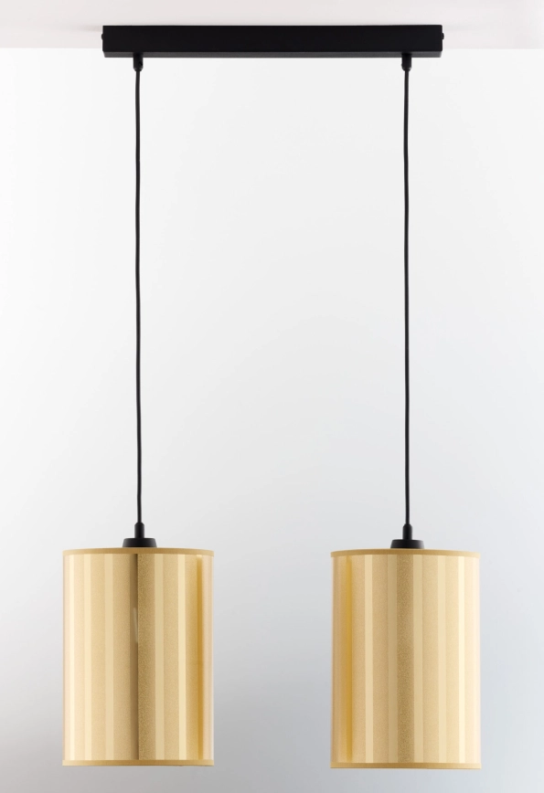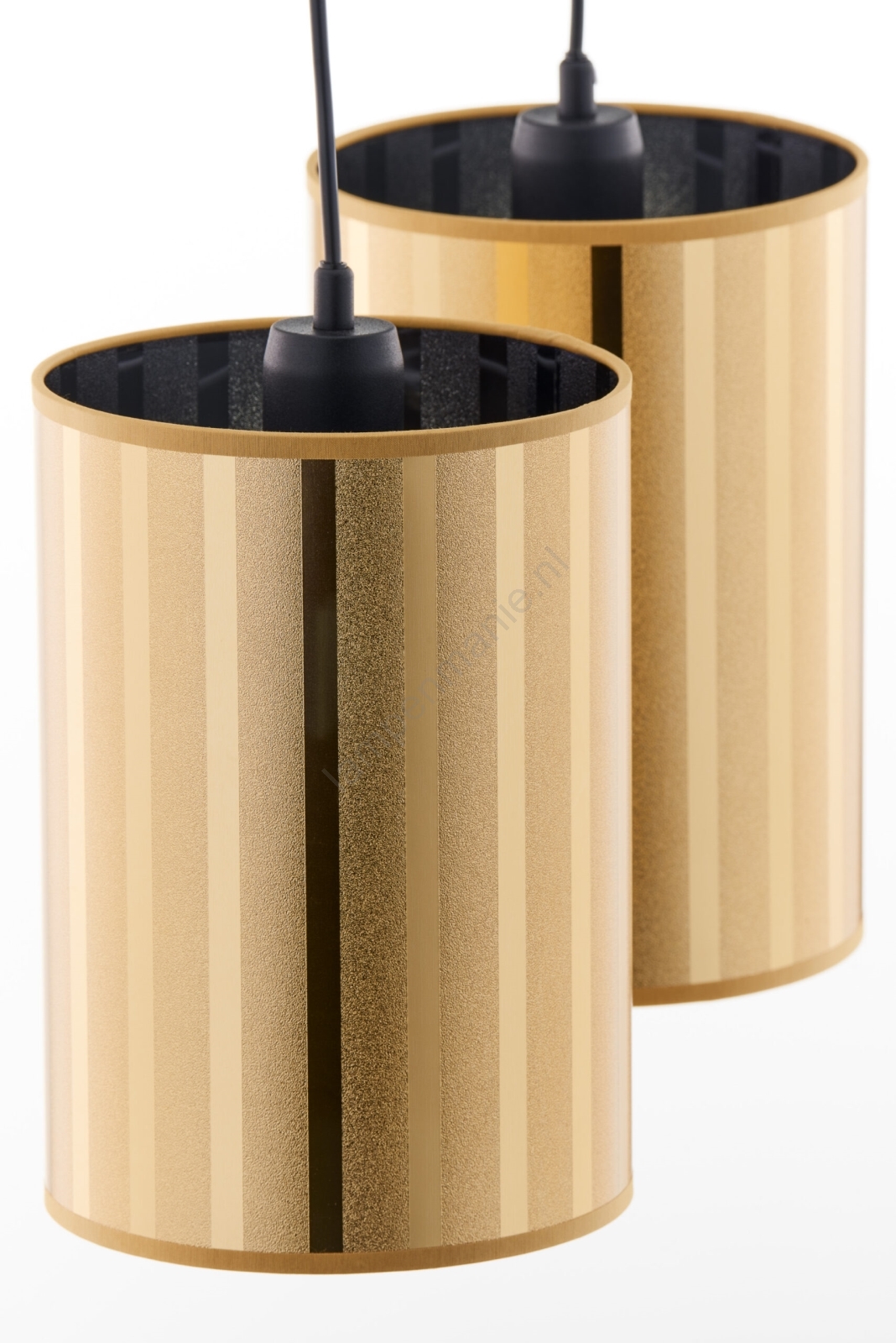 Jupiter 2091 - Hanglamp aan kabel CORTINA 2xE27/15W/230V goud/zwart kenmerkt een mooi en functioneel ontwerp.  Voor het licht is een lamp met E27 fitting geschikt. Hier kunt u andere lampen tegen voordelige prijzen kopen. U heeft een interessante aanwinst voor uw woning.