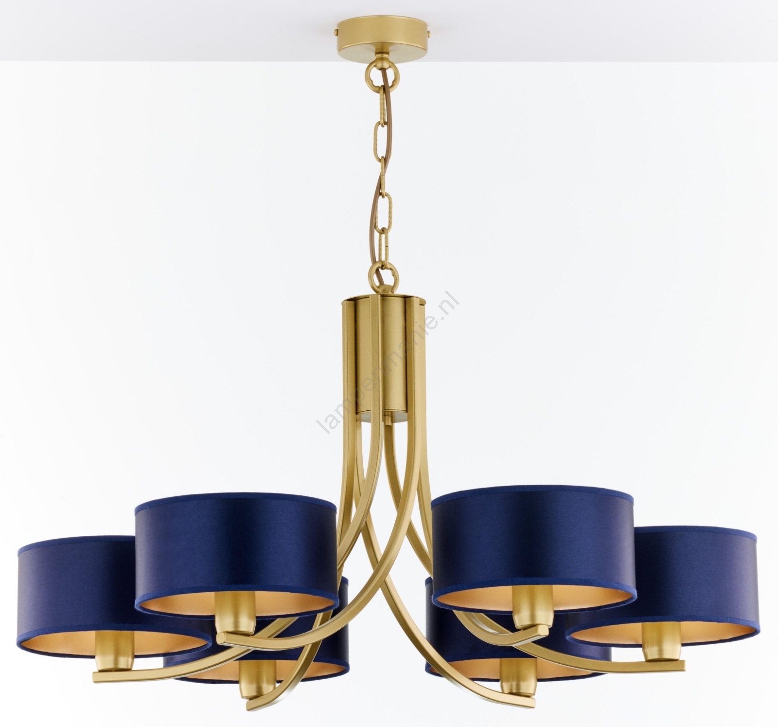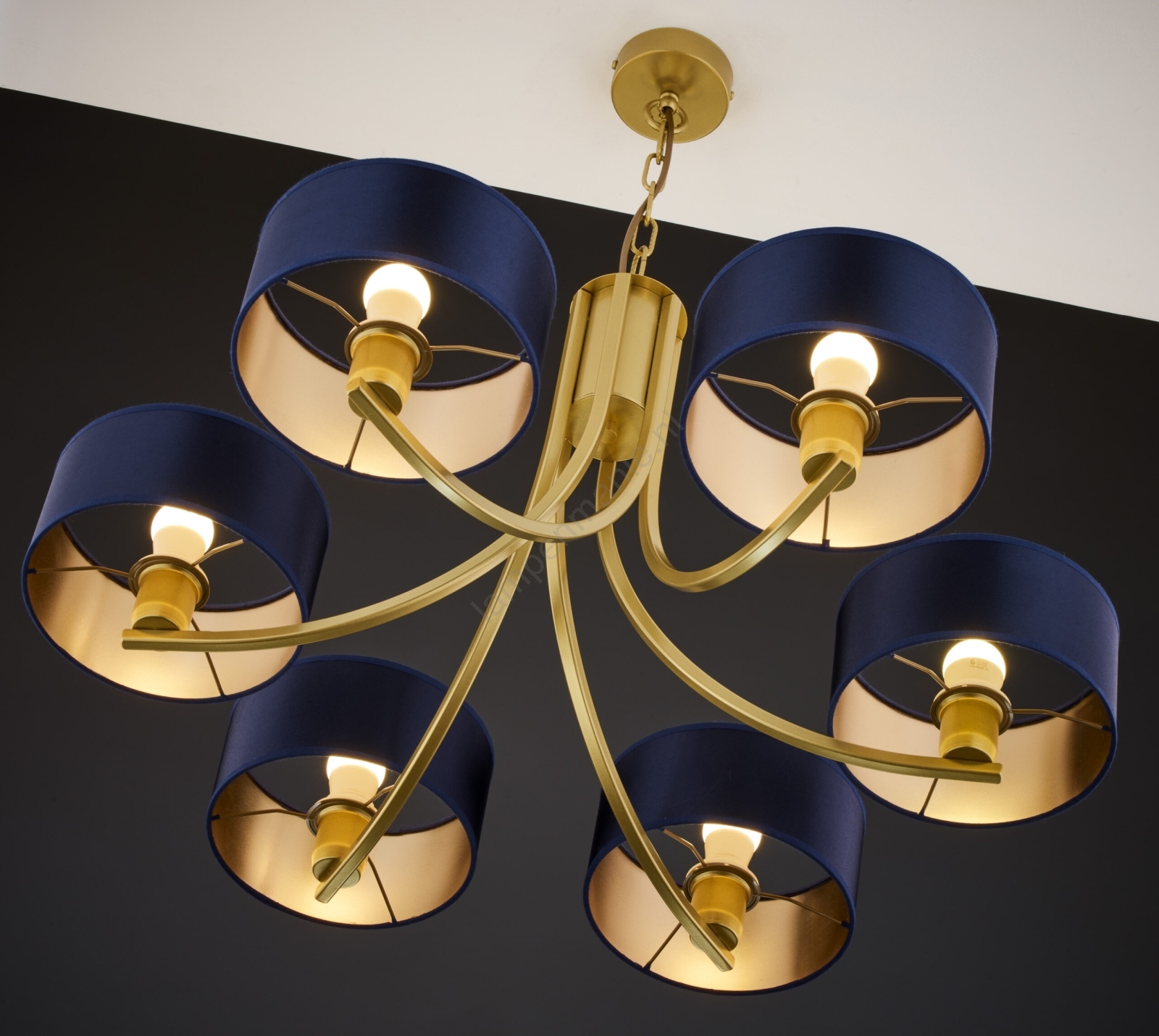 Jupiter 2095 - Kroonluchter aan ketting ARTHUR 6xE27/15W/230V blauw/goud kenmerkt een mooi en functioneel ontwerp.  Voor het licht is een lamp met E27 fitting geschikt. Hier kunt u andere lampen tegen voordelige prijzen kopen. U heeft een interessante aanwinst voor uw woning.