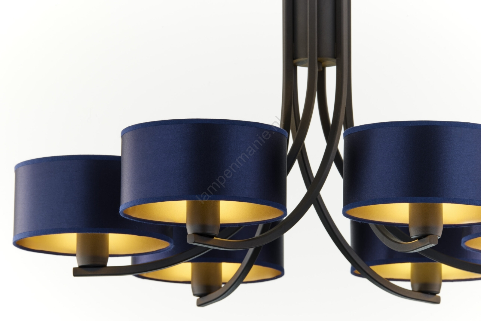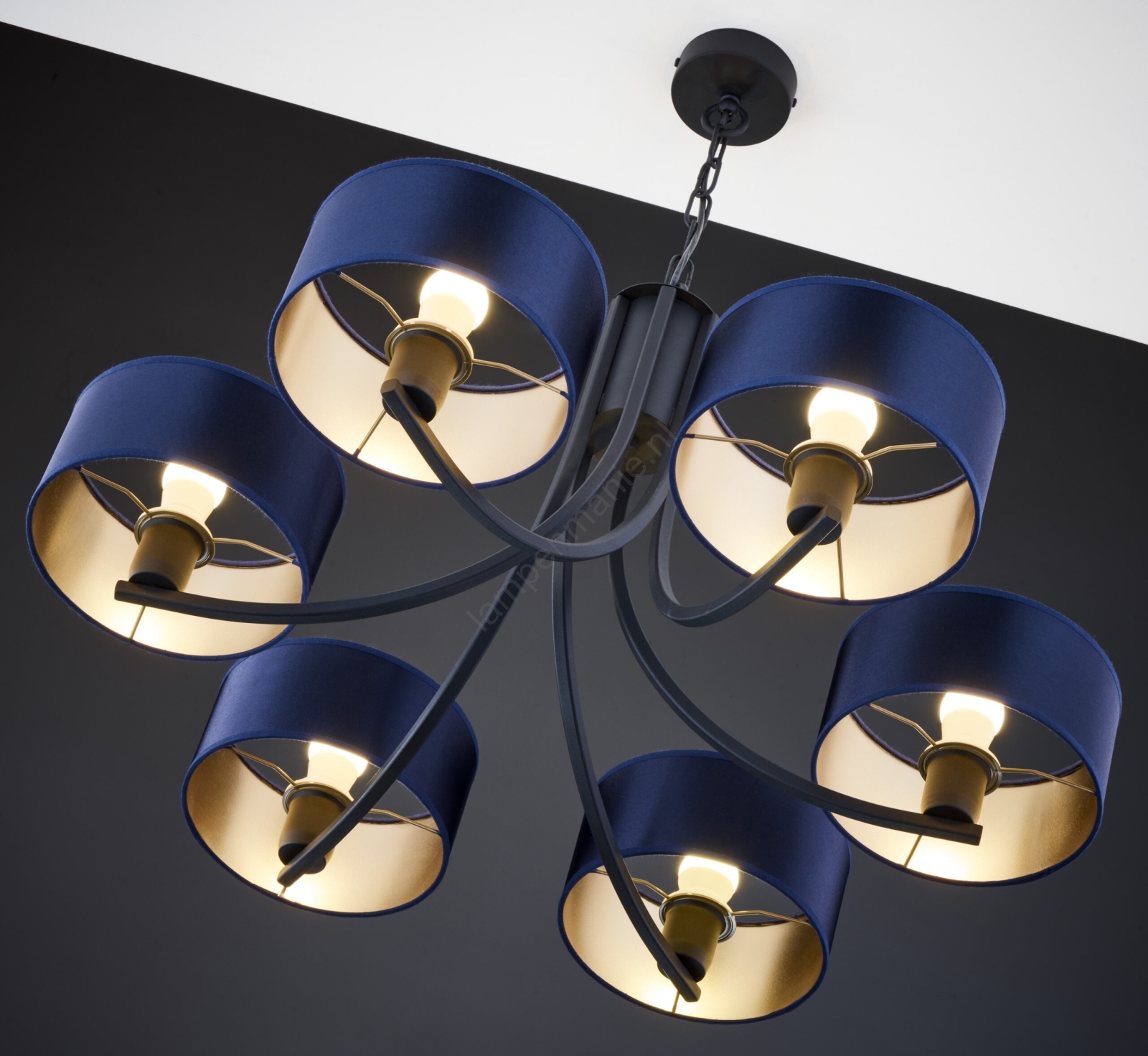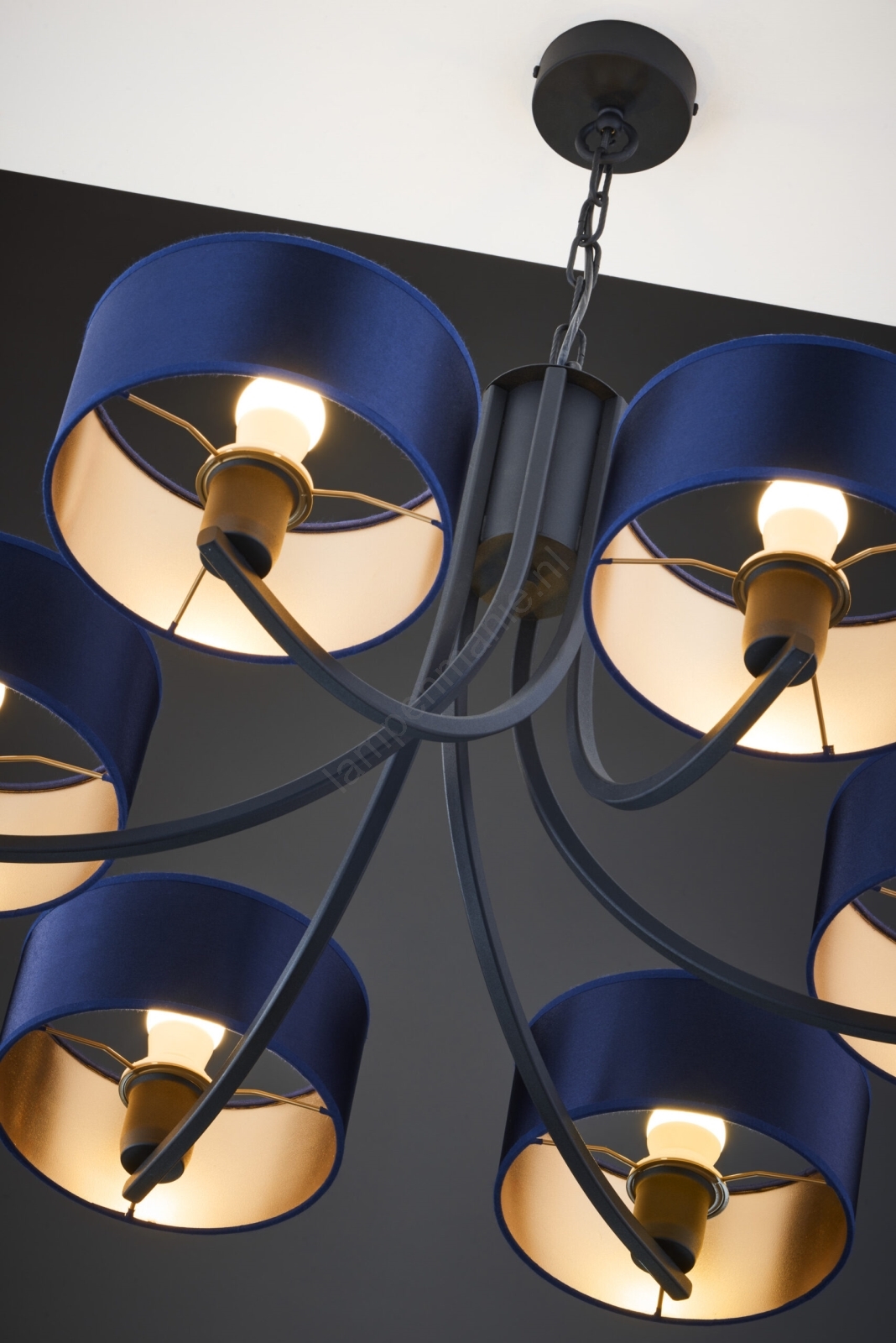 Jupiter 2102 - Kroonluchter met ketting ARTHUR 6xE27/15W/230V blauw/zwart
