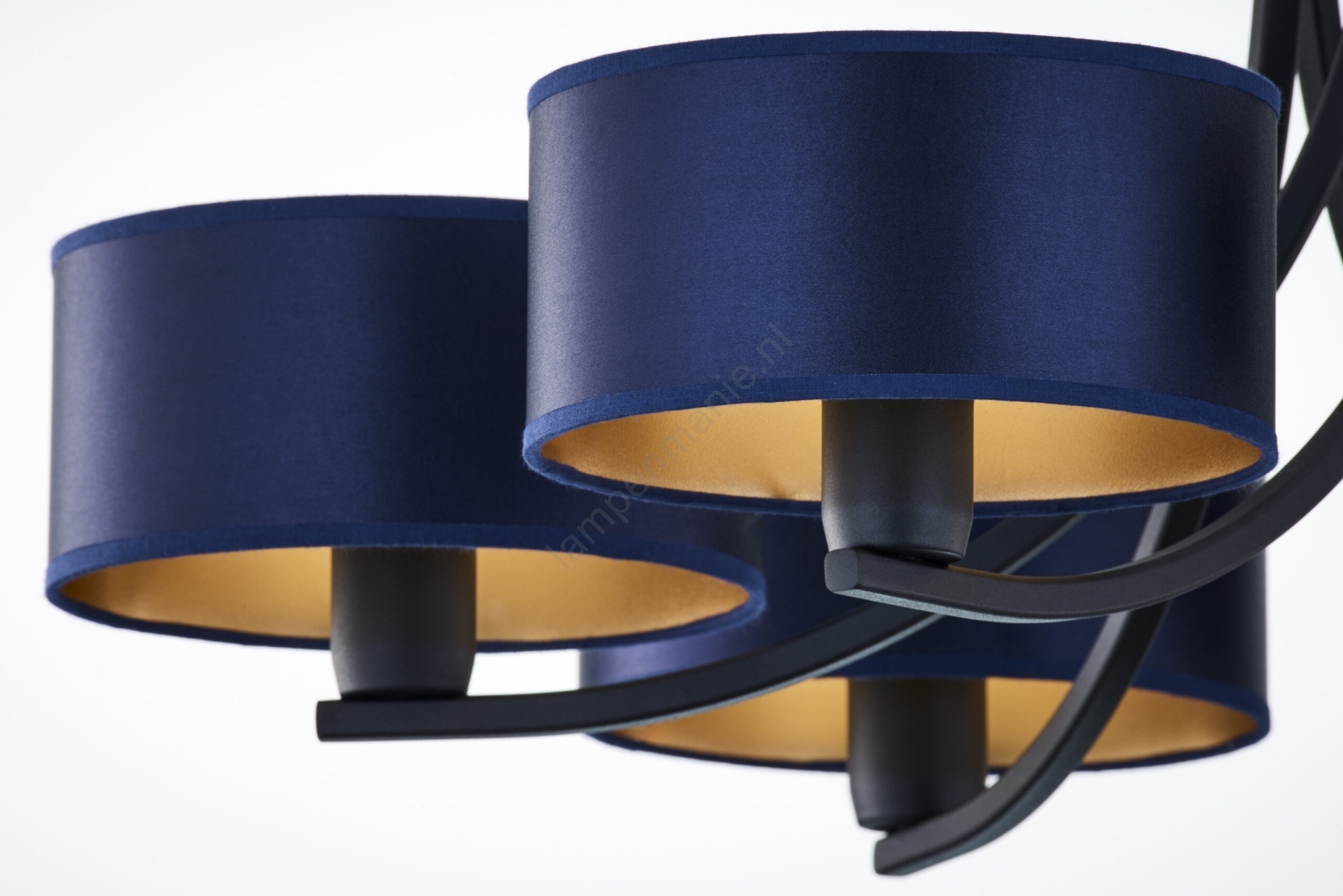 Jupiter 2102 - Kroonluchter met ketting ARTHUR 6xE27/15W/230V blauw/zwart kenmerkt een mooi en functioneel ontwerp.  Voor het licht is een lamp met E27 fitting geschikt. Hier kunt u andere lampen tegen voordelige prijzen kopen. U heeft een interessante aanwinst voor uw woning.