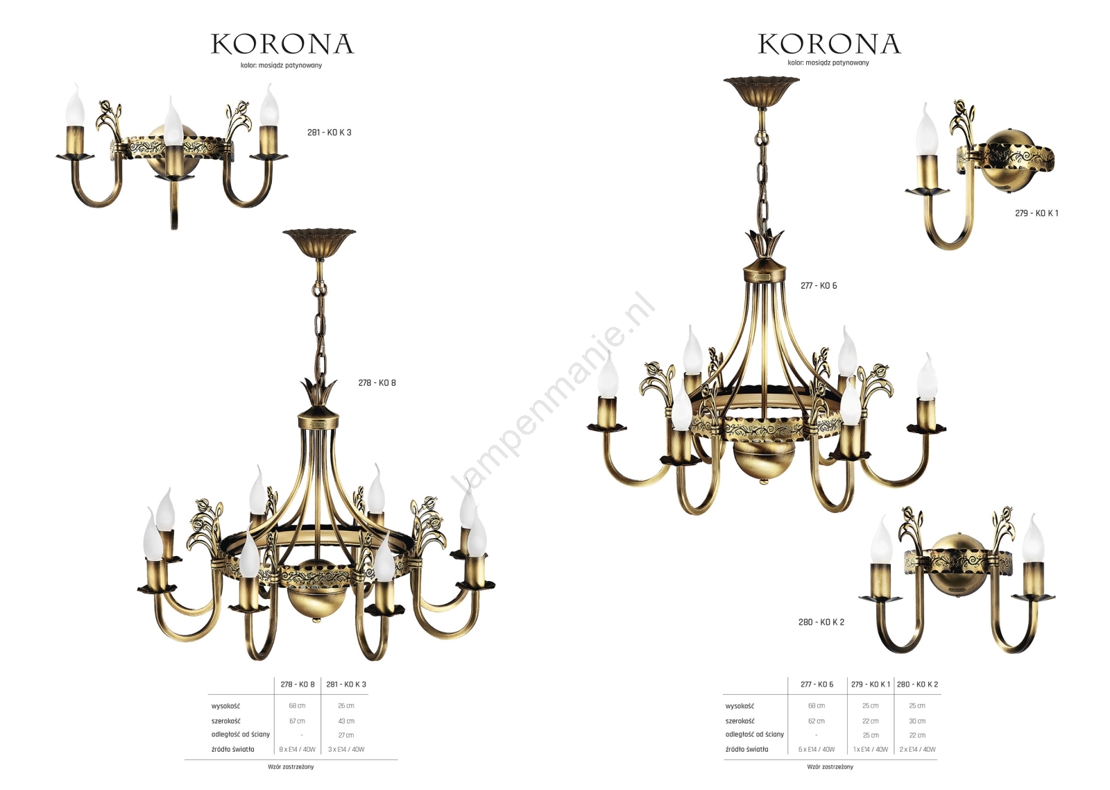 Jupiter 280 - KO K 2 - Wandlamp KORONA 2xE14/40W/230V kenmerkt een mooi en functioneel ontwerp.  Voor het licht is een lamp met E14 fitting geschikt. Hier kunt u andere lampen tegen voordelige prijzen kopen. U heeft een interessante aanwinst voor uw woning.