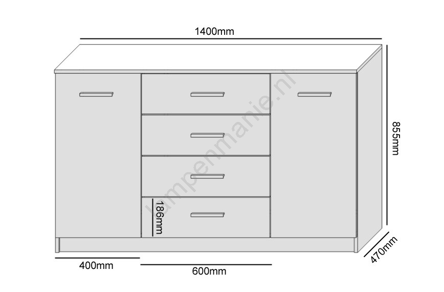 • Voorzien van 4 ruime lades en 2 kasten om uw spullen binnen handbereik op te bergen.