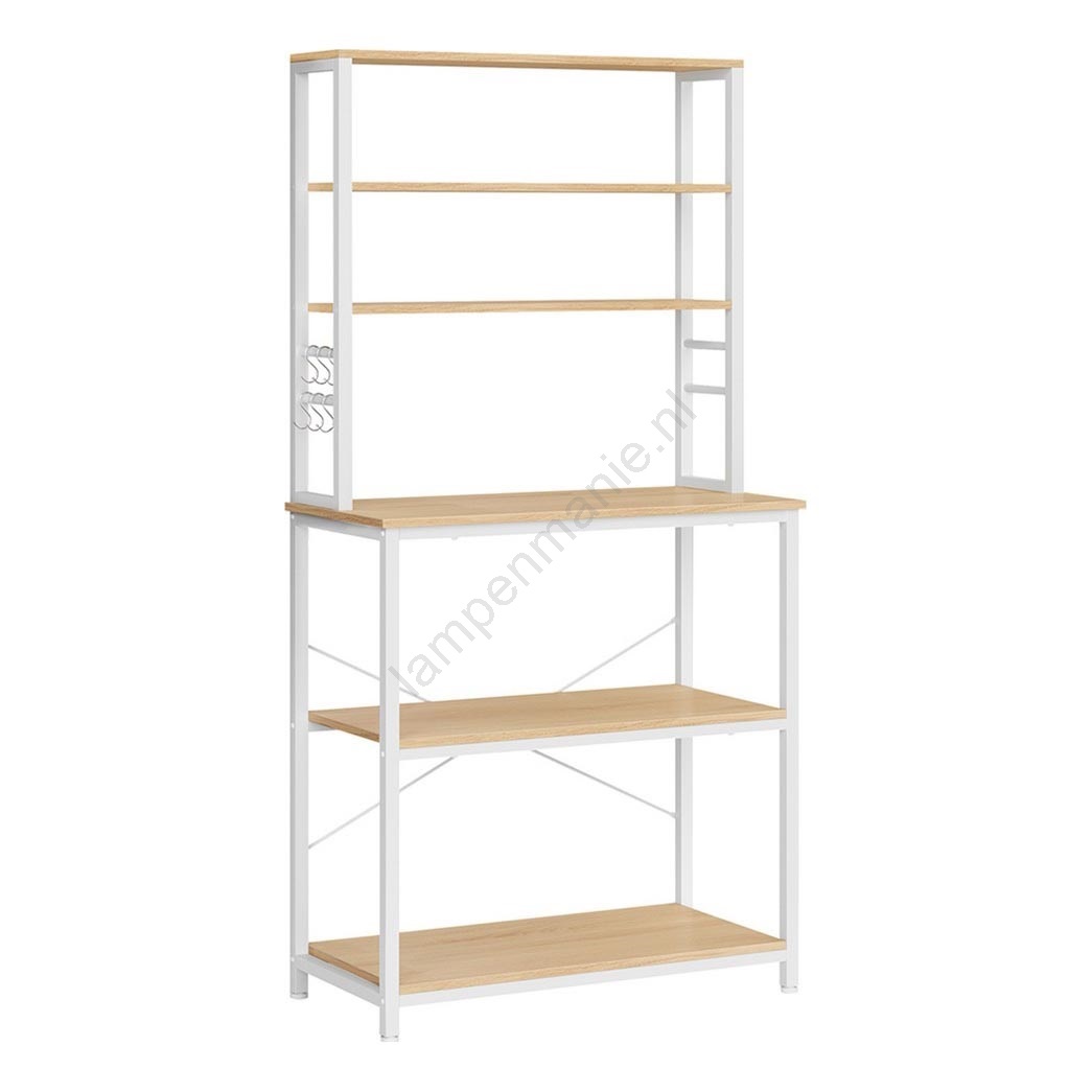 • De onderste middelste plank is in 2 hoogtes verstelbaar, zodat u er apparatuur van verschillende formaten op kunt zetten – van een blender en airfryer tot potten en pannen.