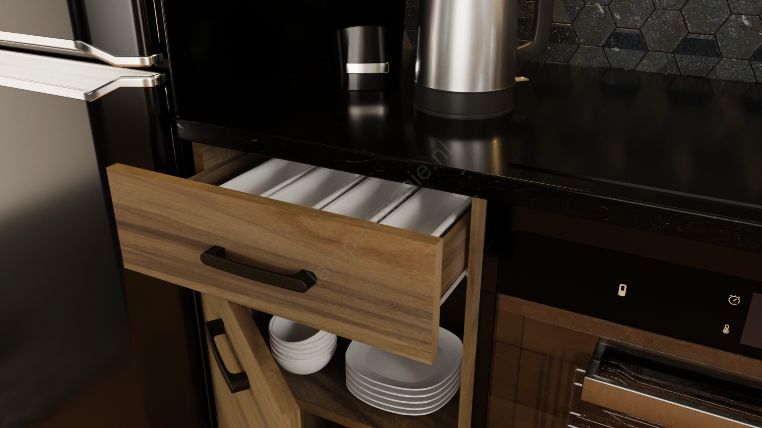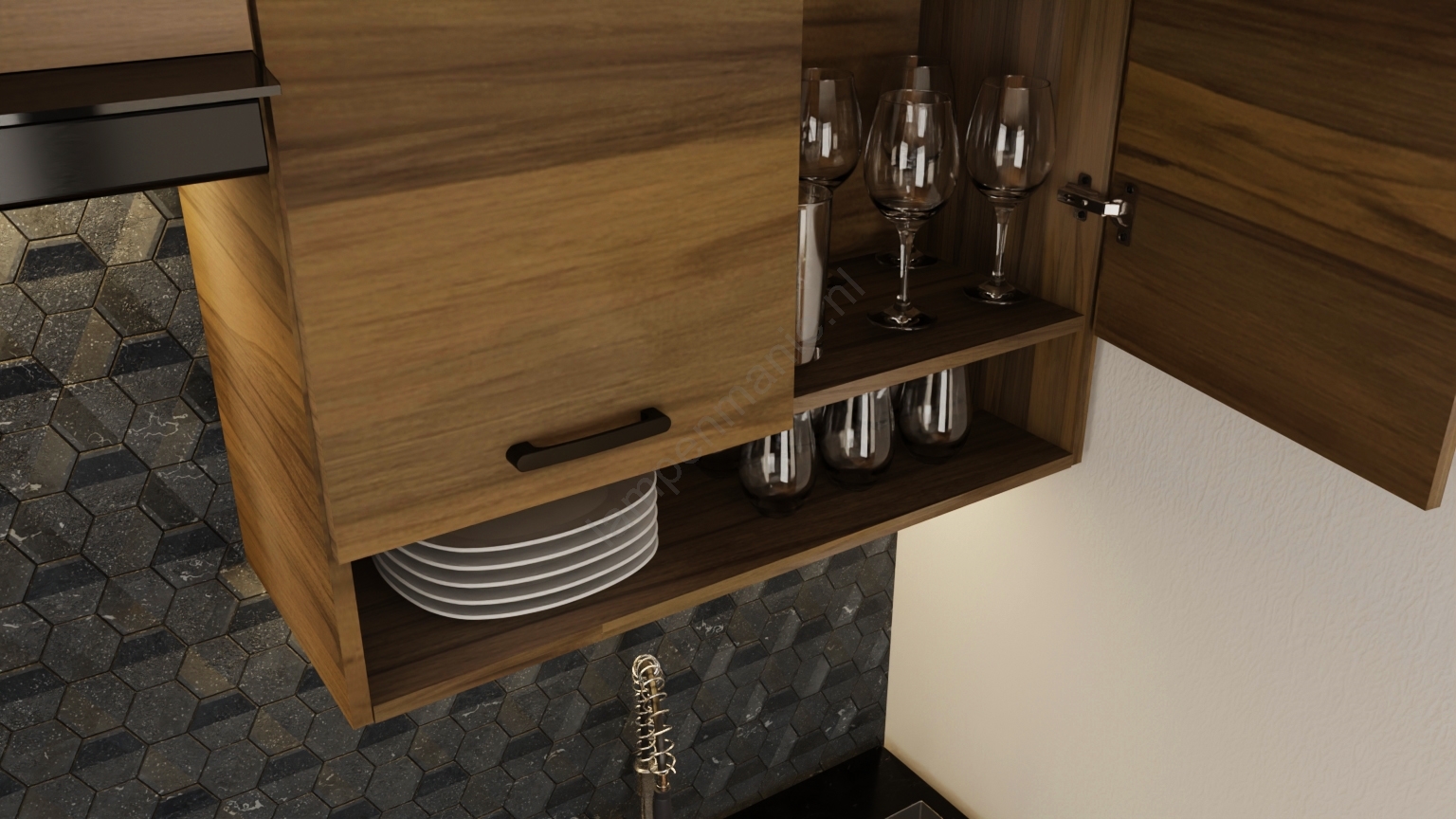 • Deindeling van de kasten is modulair, u kunt de keuken naar eigen wens samenstellen.