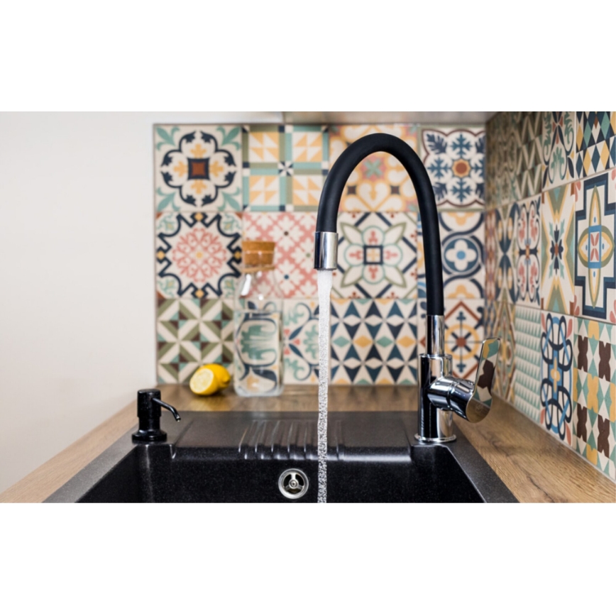 KFA Armatura 6553-915-00 - Kraan voor gootsteen met flexibele arm RUMBA 40,5 cm zwart/glanzend chroom