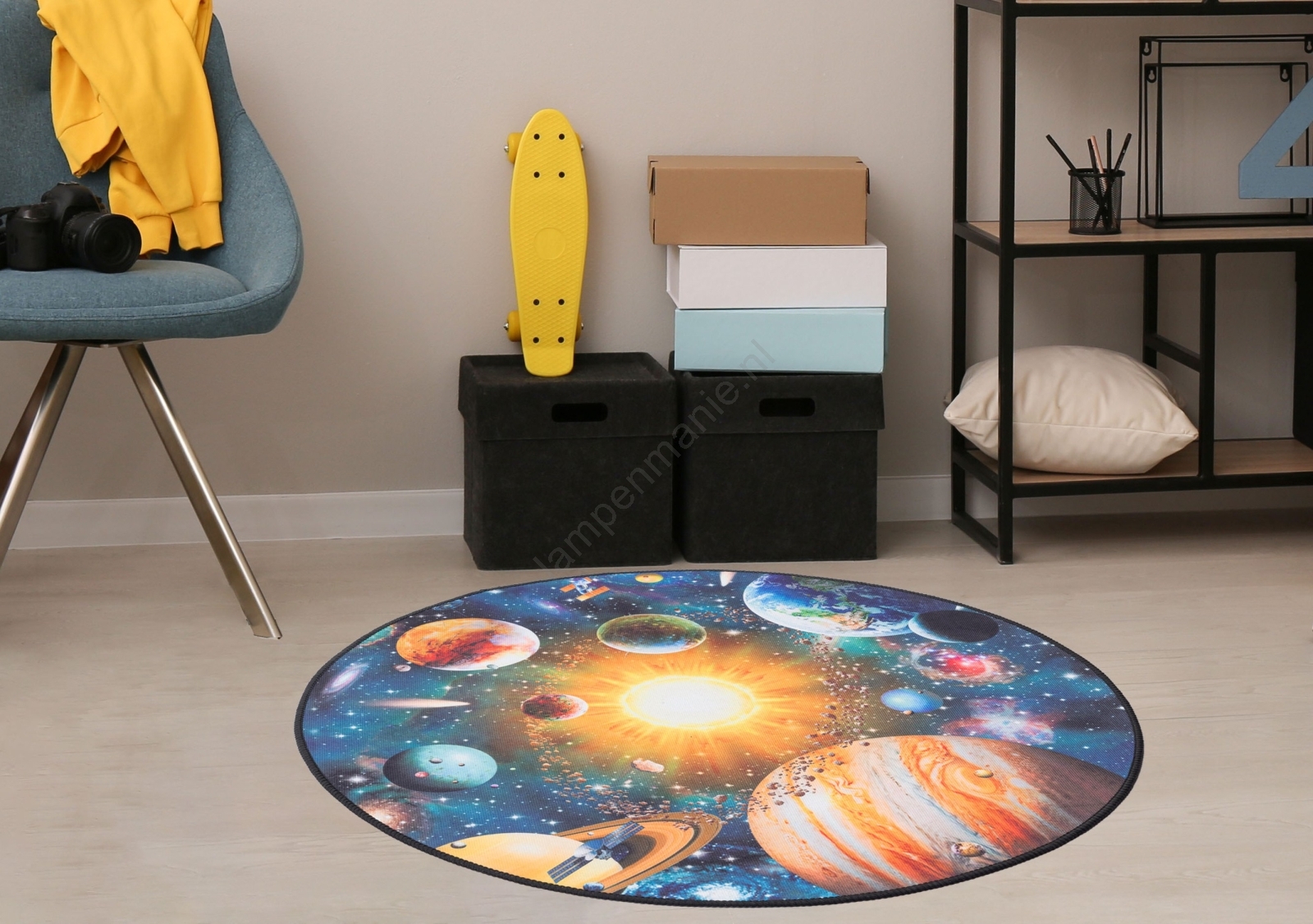 Kinder-vloerkleed met antislip PRINT 3D 80 cm planeten/veelkleurig