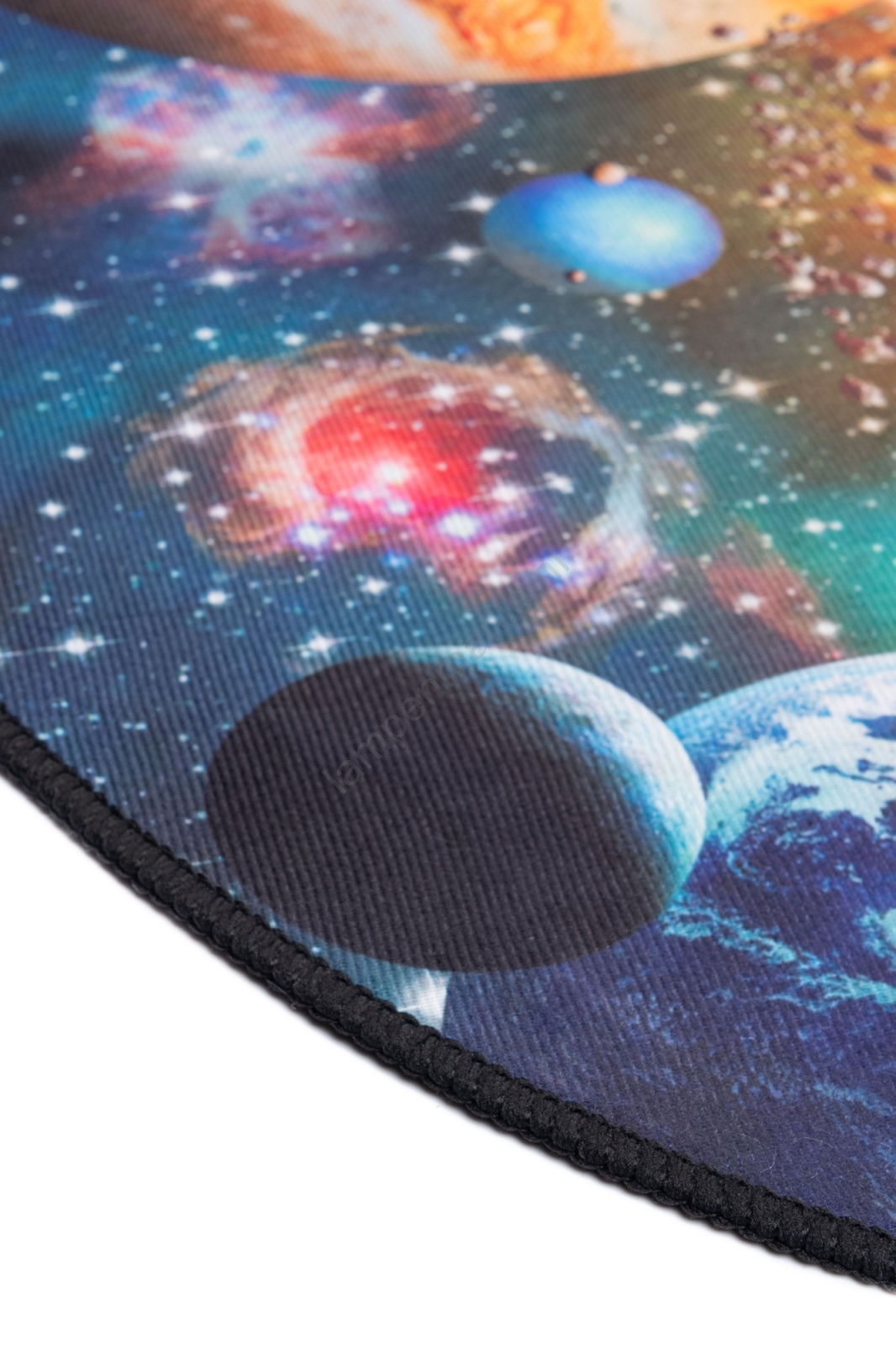 • Kleurrijk vloerkleed voor kinderen met planetenpatroon.