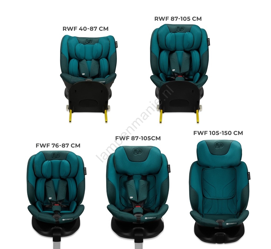 • Reizen tegen de rijrichting (RWF) is mogelijk tot vier jaar, wat de veiligheid bij een frontale botsing aanzienlijk verhoogt.