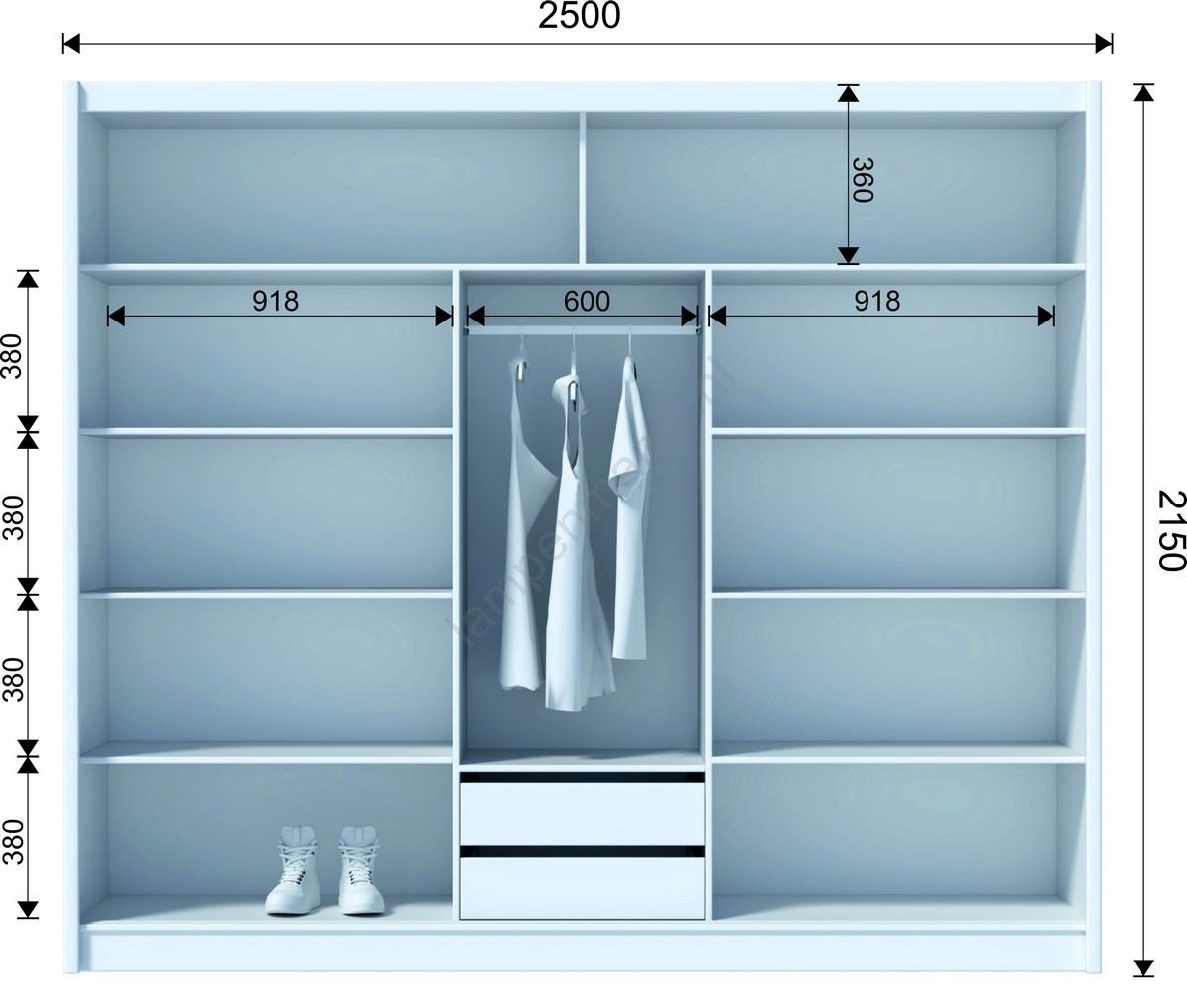 Kledingkast met schuifdeuren SAPHIRA 250x215 cm wit