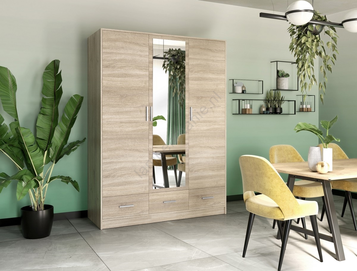 • Kledingkast met spiegel SANNA 150x215 cm Sonoma eik