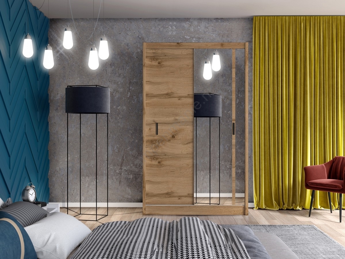 • Kledingkast met spiegel SABRINA 150x215 cm Wotan eik
