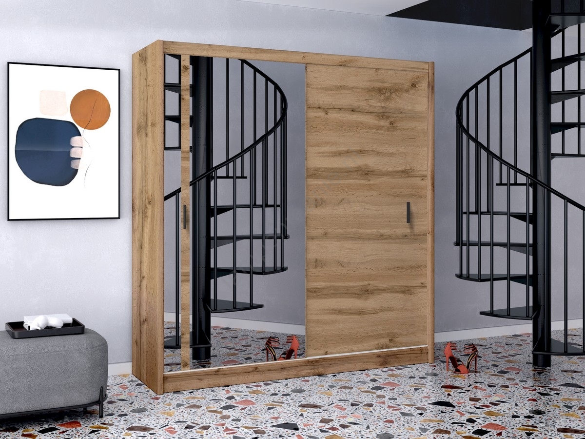• Kledingkast met spiegel SABRINA 203x215 cm eiken woltan