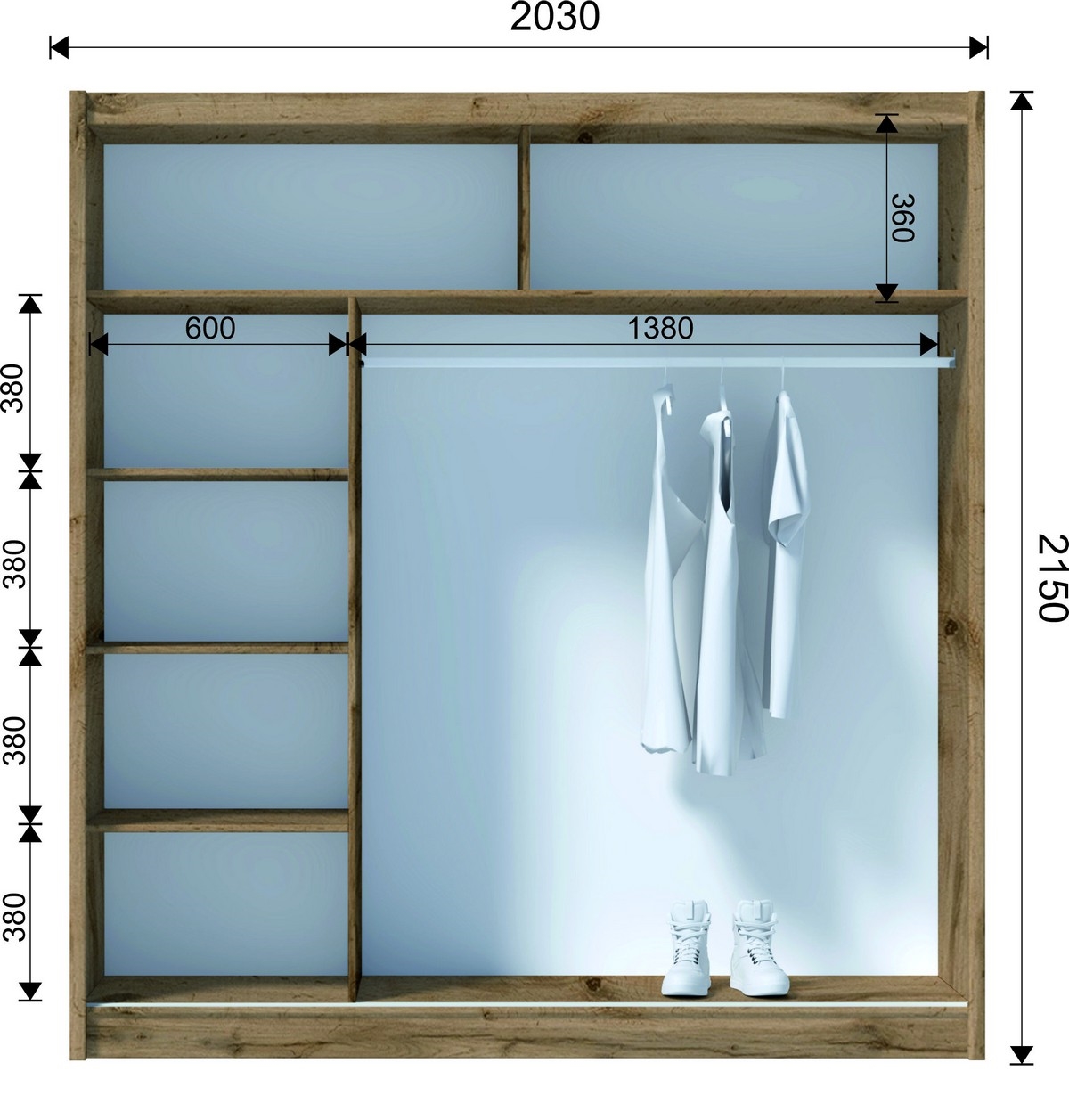 • De kast beschikt over 4 open planken, een kledingroede en 2 bovenplanken voor het opbergen van tassen en seizoensgebonden items.