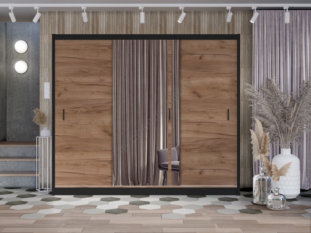 • Kledingkast met spiegel MIRO 250x215 cm craft eik/zwart