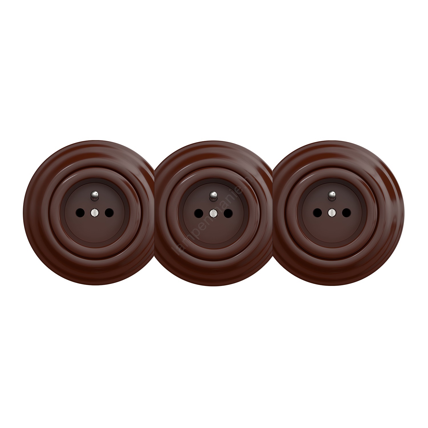 Kliklap - Retro drievoudige wandcontactdoos met afdekraam 230V bruin