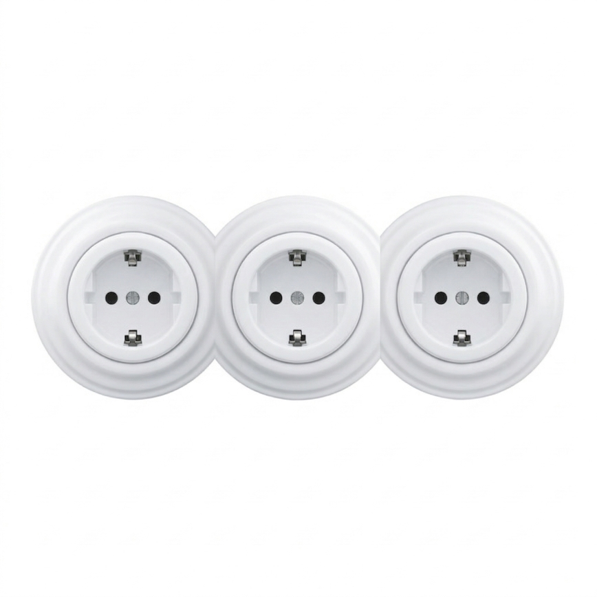 • Kliklap - Driedubbele retro-wandcontactdoos voor huishoudelijk gebruik met SCHUKO-frame 230V keramiek wit