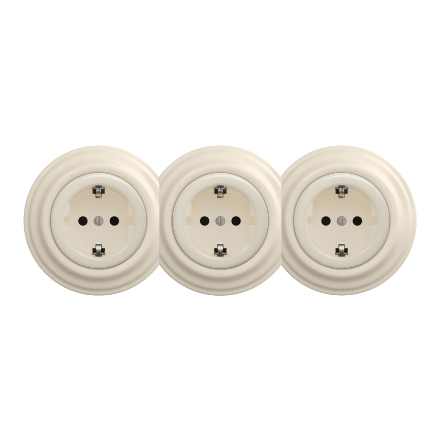 Kliklap - Drievoudig retro stopcontact met afdekraam SCHUKO 230V beige