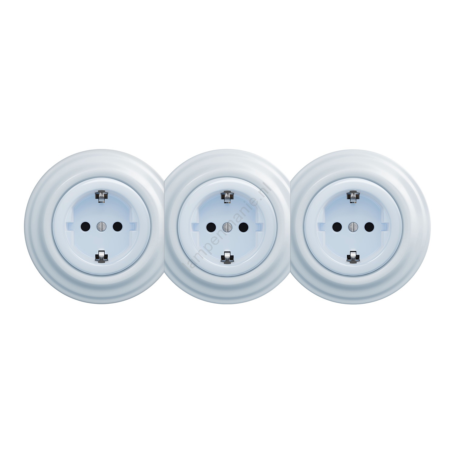 Kliklap - Drievoudige retro-wandcontactdoos voor huishoudelijk gebruik met afdekraam SCHUKO 230V blauw