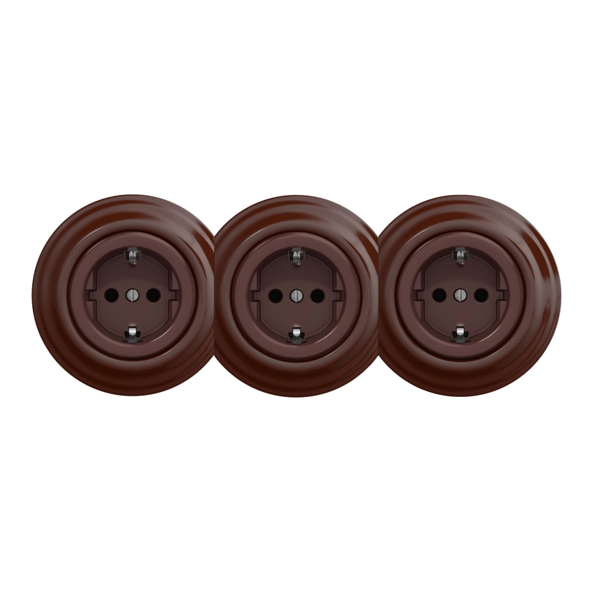 Kliklap - Drievoudige retro wandcontactdoos met afdekraam SCHUKO 230V bruin