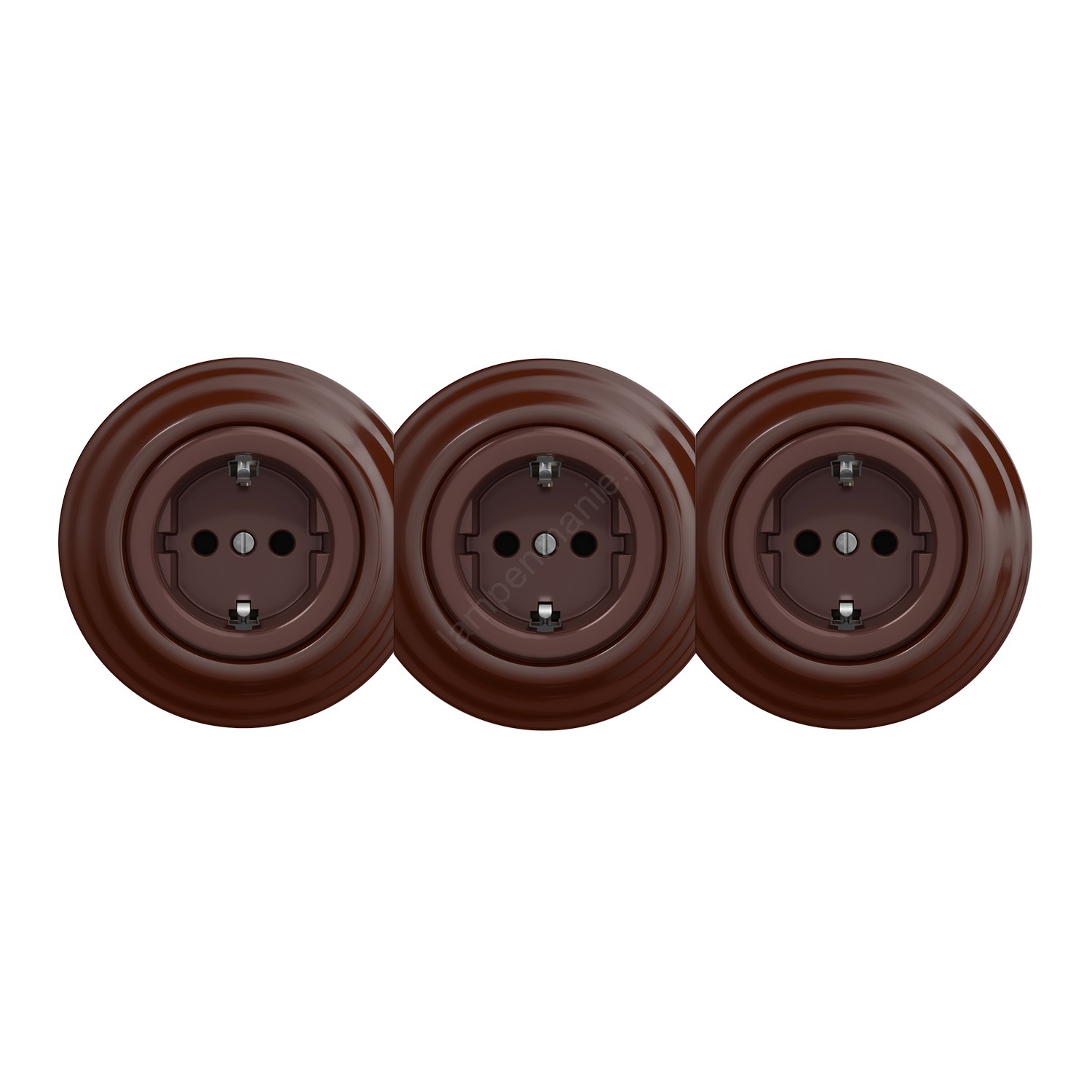 Kliklap - Drievoudige retro wandcontactdoos voor thuis met SCHUKO-afdekraam 230V bruin