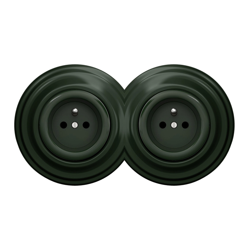 Kliklap - Dubbel retro stopcontact met afdekraam 230V groen
