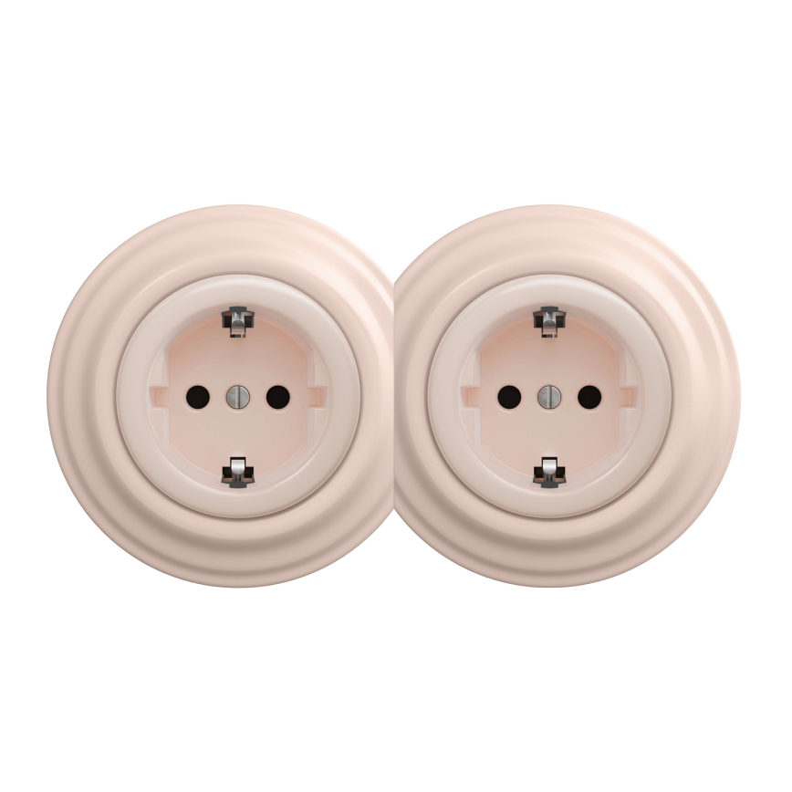 Kliklap - Dubbele retro wandcontactdoos met afdekraam SCHUKO 230V/16A oudroze