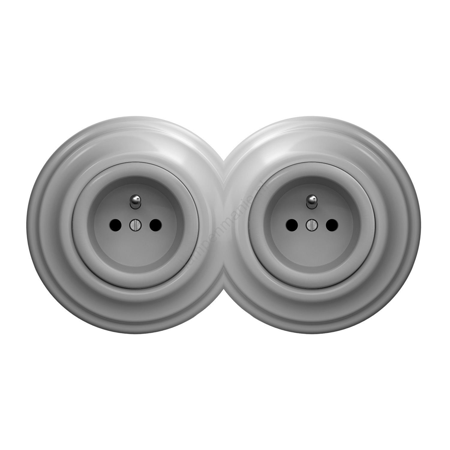 Kliklap - Dubbele retro-wandcontactdoos met frame, 230V, grijs