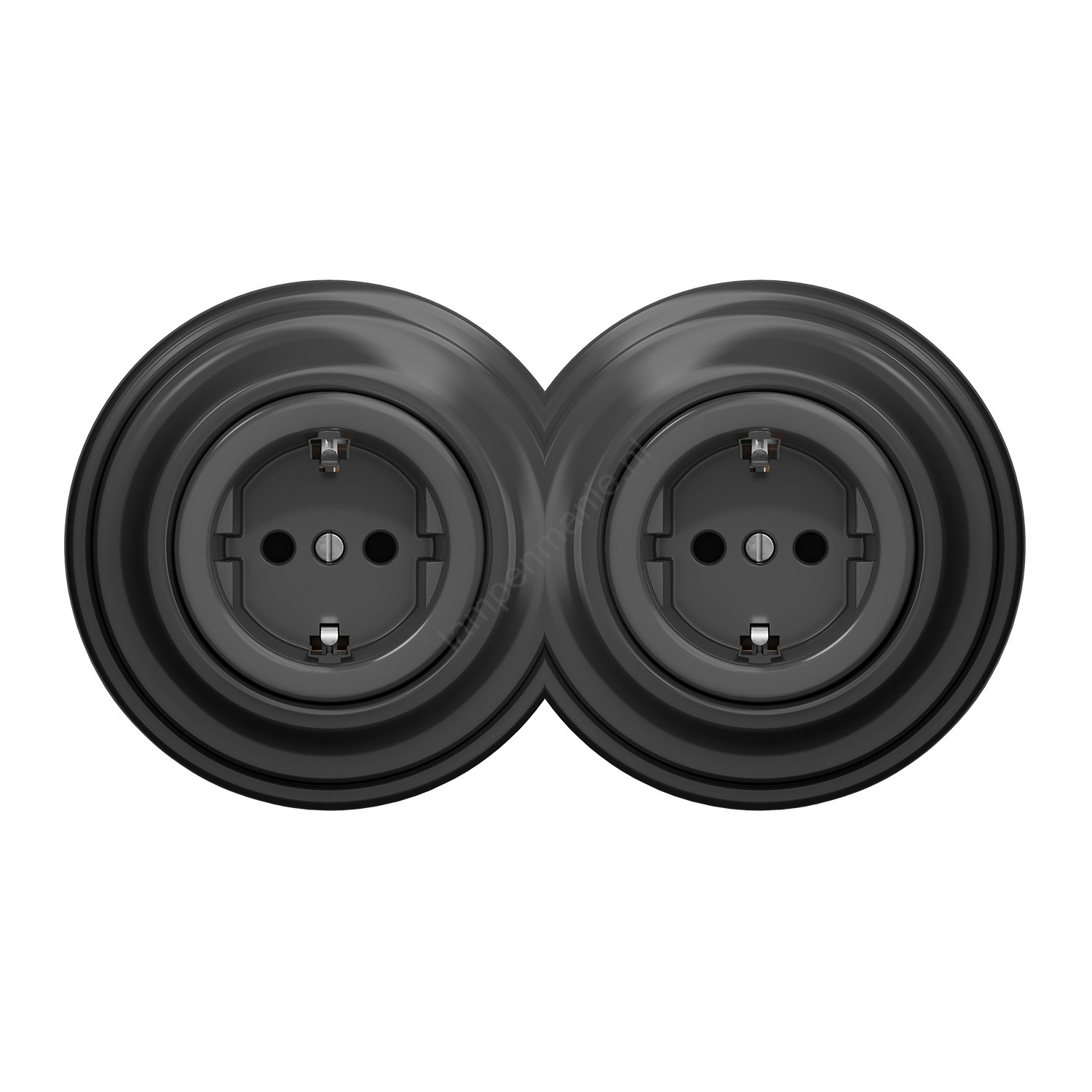 Kliklap - Dubbel retro stopcontact met frame, SCHUKO 230V, antraciet