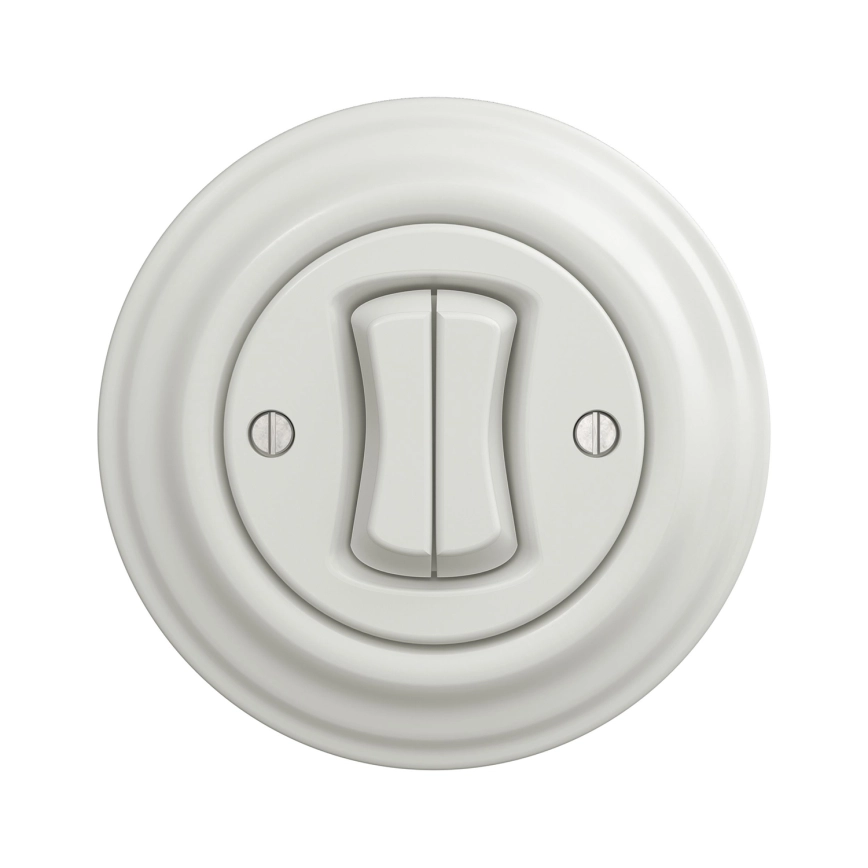 • Kliklap - Retro dubbele trappenschakelaar met frame nr. 6+6, keramisch wit