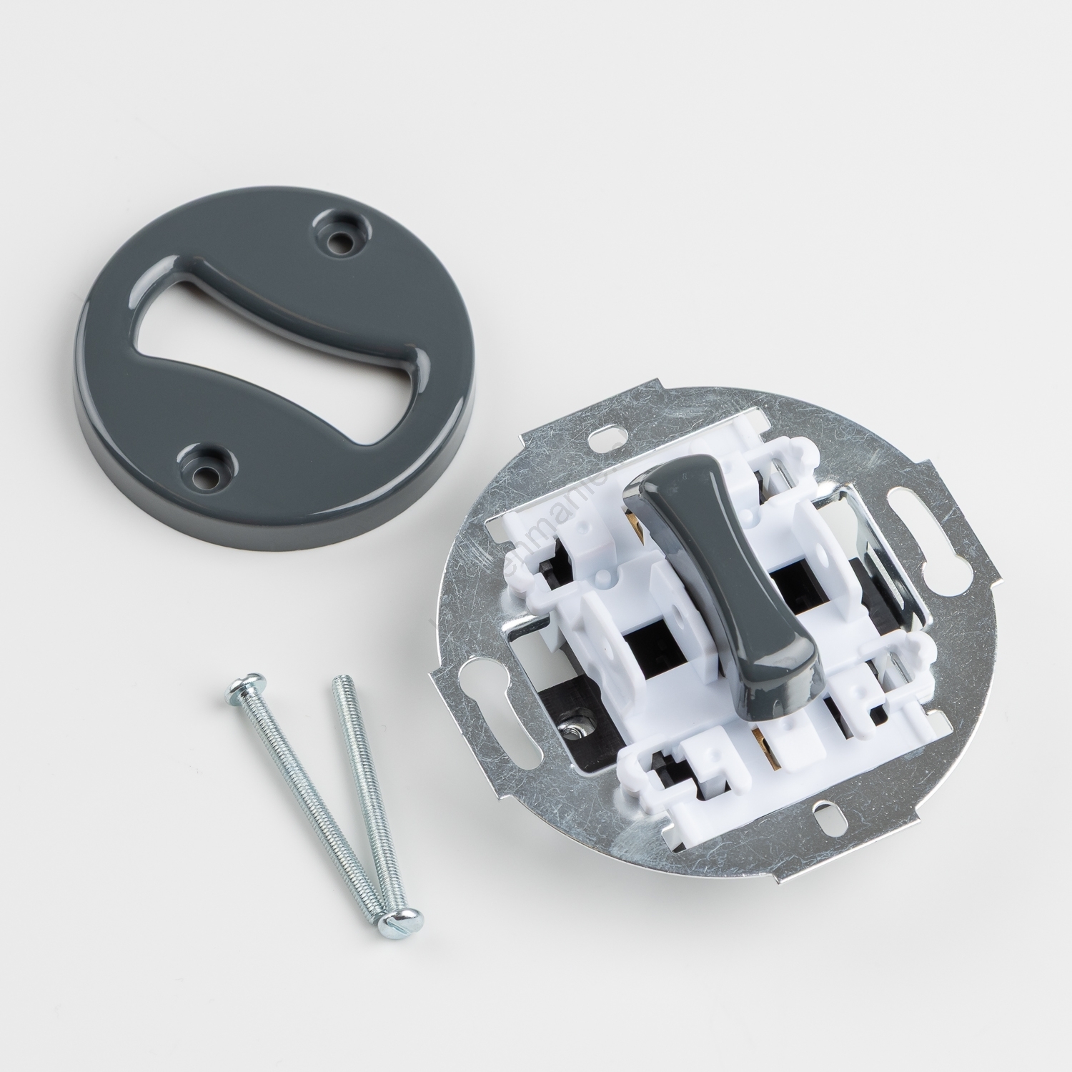 • Kliklap - Retro enkelpolige schakelaar nr. 1 en SCHUKO-stopcontact 230V met afdekraam, grijs