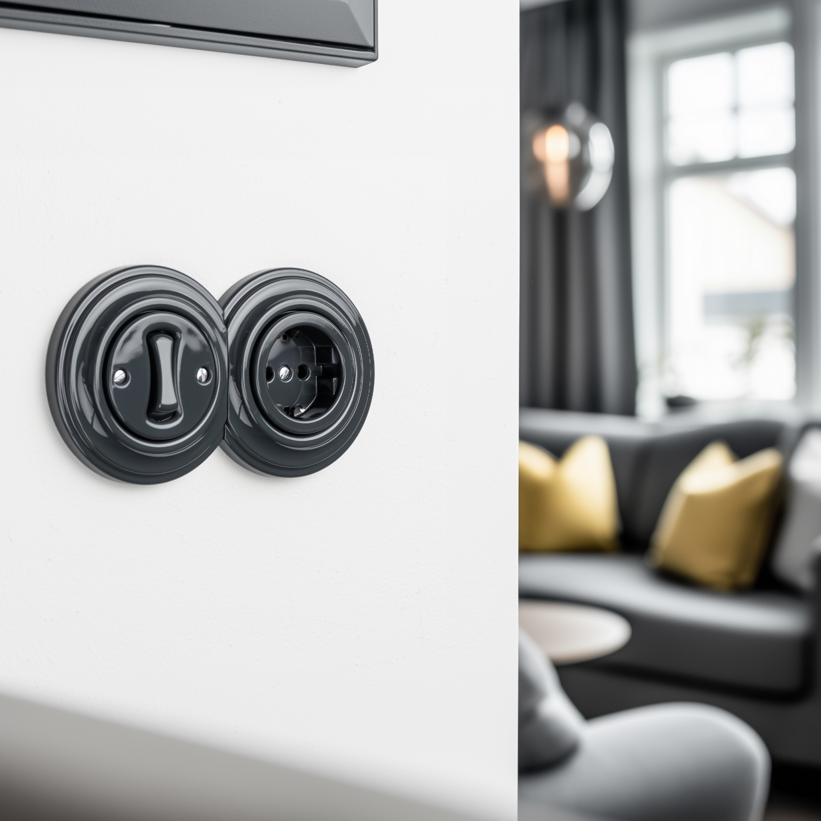 • Kliklap - Retro eenpolige schakelaar nr. 1 en SCHUKO 230V-stopcontact met antraciet afdekraam