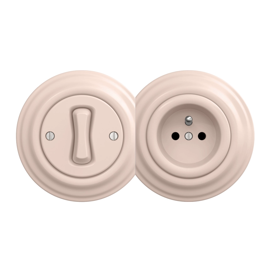 Kliklap - Retro eenpolige schakelaar nr. 1 en 230V stopcontact met afdekraam, oudroze