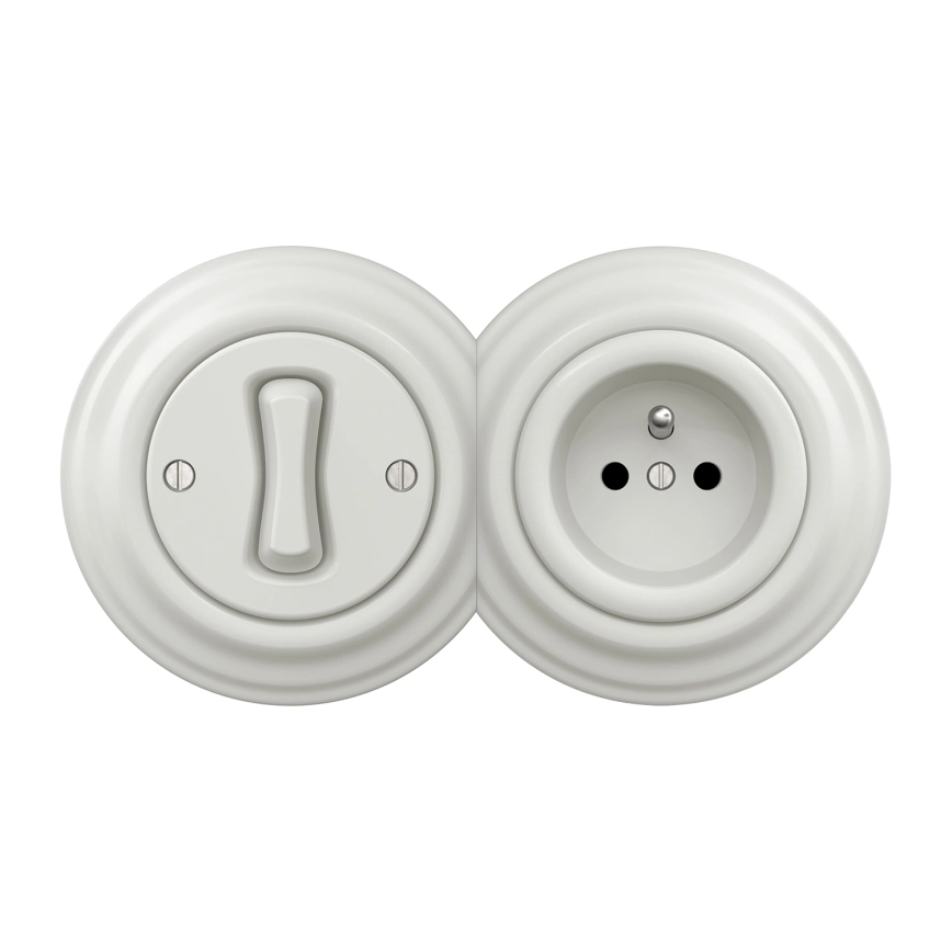 Kliklap - Retro enkelpolige schakelaar nr. 1 en stopcontact 230 V met afdekraam, keramisch wit