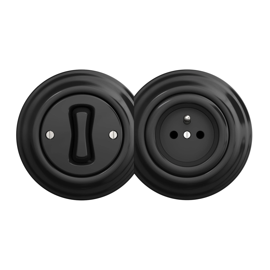 Kliklap - Retro eenpolige schakelaar nr. 1 en 230 V stopcontact met zwart frame