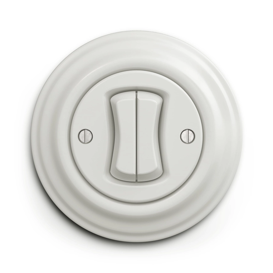 Kliklap - Retro serieschakelaar met afdekraam nr. 5, keramisch wit