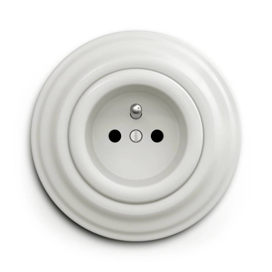 • Kliklap - Retro keramische wandcontactdoos voor huishoudelijk gebruik met afdekraam, 230 V, wit