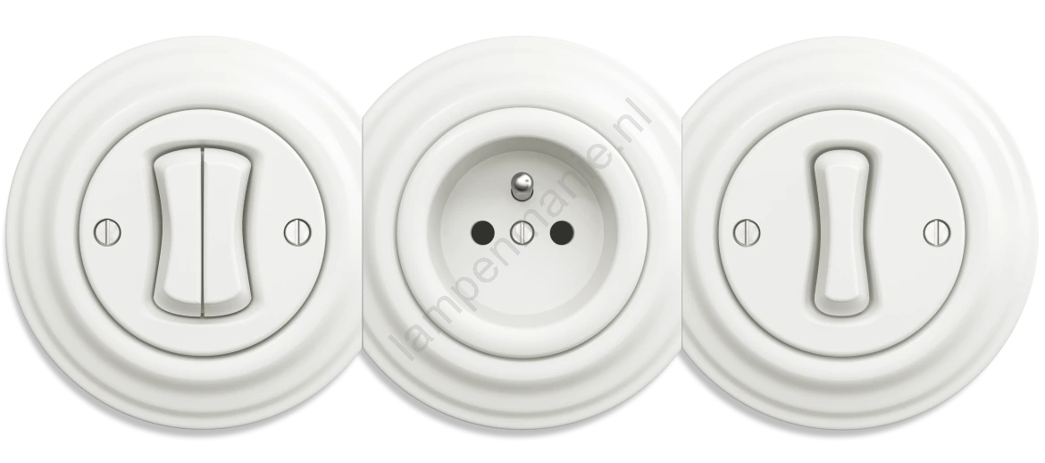 • Kliklap - Retro dubbele drukknop, randloos, keramisch wit