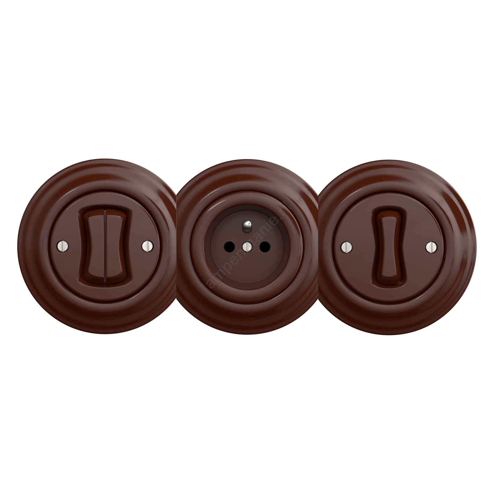 Kliklap - Retro stopcontact zonder afdekraam SCHUKO 230V/16A, bruin