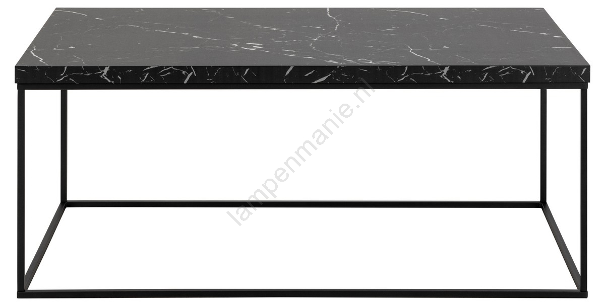 • Tafelblad van zwart Marquina-marmer met ruw melamine, onderstel mat zwart, ruw gepoedercoat staal.