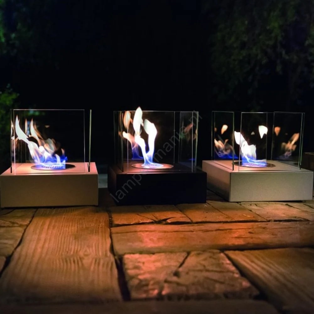 • Beschermend glas dat het vuur aan vier zijden afschermt.