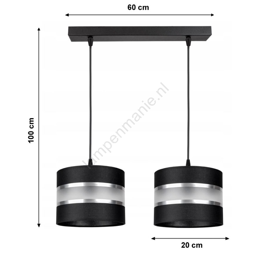 • Hanglamp aan koord CORAL 2xE27/60W/230V zwart-wit